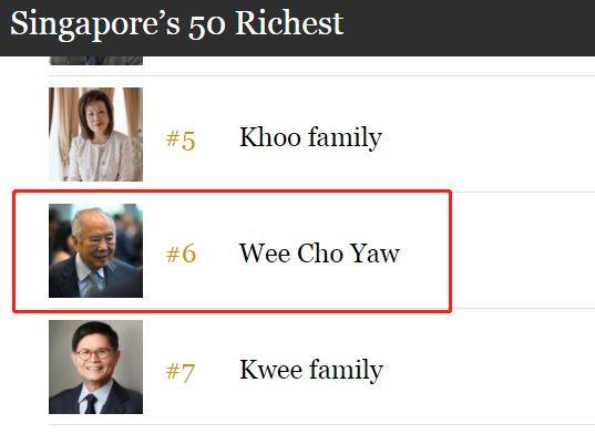 福布斯新加坡富商榜单里,黄祖耀排名第6