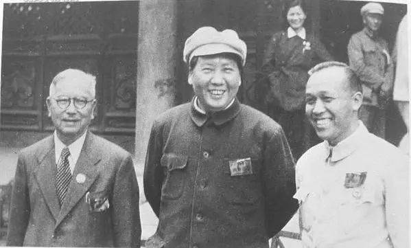 毛泽东与东南亚华侨陈嘉庚和庄明理聊天,来源:Wikimedia Commons