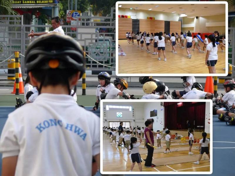 低年级的学生因身体条件所限,体育老师会安排一些非激烈对抗的田径运动,高年级的学生则会选择篮球、足球等有较多身体碰撞的竞技运动。除课程表上的固定设置外,新加坡的中小学里还有各种学生自发组织的课余体育小组,在结束了一天的课程后,进行1—2小时的体育锻炼。