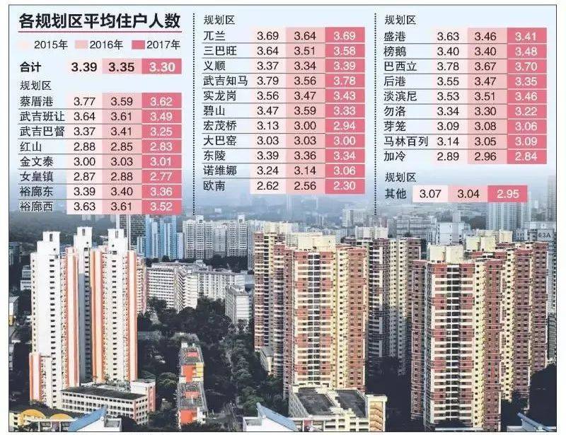 数据显示,截至2017年,全国近30个规划区,有六个的平均住户人数甚至少过三人。超过三分之一地区呈现下降趋势,只有部分地区如碧山、武吉知马和兀兰等出现上升。