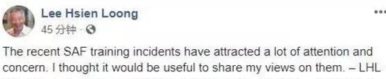 李总理在Facebook发文对于近期发生的军训事故表示难过,文稿中写道: