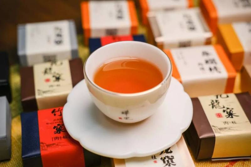 武夷肉桂——属乌龙茶,有一百多年的泡制历史,以肉桂树品种的茶树命名。成茶外形紧结呈青褐色,汤气香味扑鼻。是中国十大名茶之一。