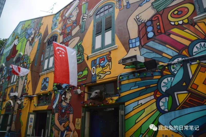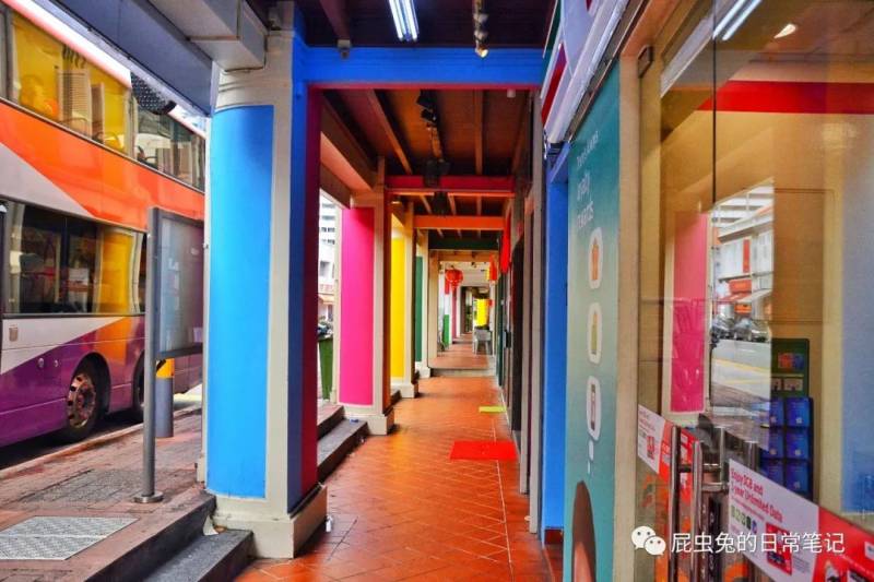 说到装修各具特色,这里主街道的色彩搭配很值得一说,想必去过牛车水或者小印度的话,都见过新加坡非常出名的五彩缤纷的墙。