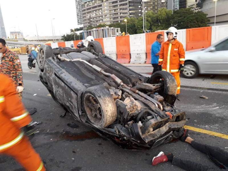 吉隆坡交通调查与执法组主任祖基菲里说,初步调查,事发前死伤者两人共乘一辆黑色华嘉轿车,取道联邦大道从市中心方向行驶时突然失控,撞向左边三角锥后冲入旧巴生路出口处和翻覆。