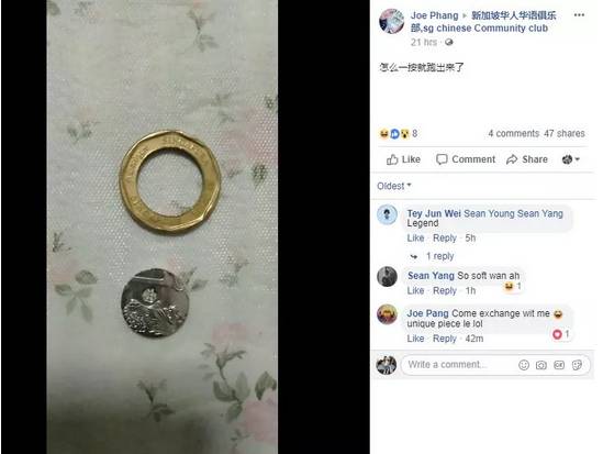 他在自己的脸书上分享了新加坡新版1元硬币的“解剖”照...