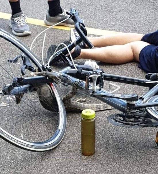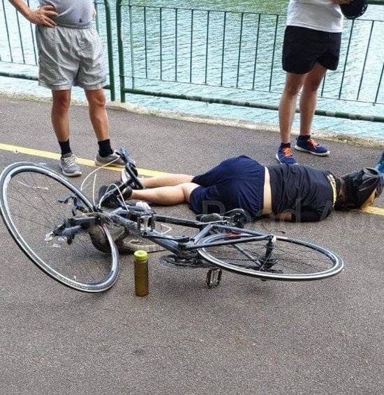 根据上载至多个面子书专页的照片显示,当时脚踏车道上躺着一名头戴头盔,身穿黑色上衣和蓝色短裤的脚踏车男骑士。