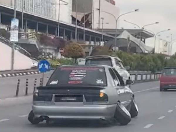 根据网民在面子书“KL吹水站”发布的15秒短片显示,一辆在路上行驶的宝腾威拉(Proton Wira)轮胎已凸出一半“八字”可是却依然可慢行行驶。