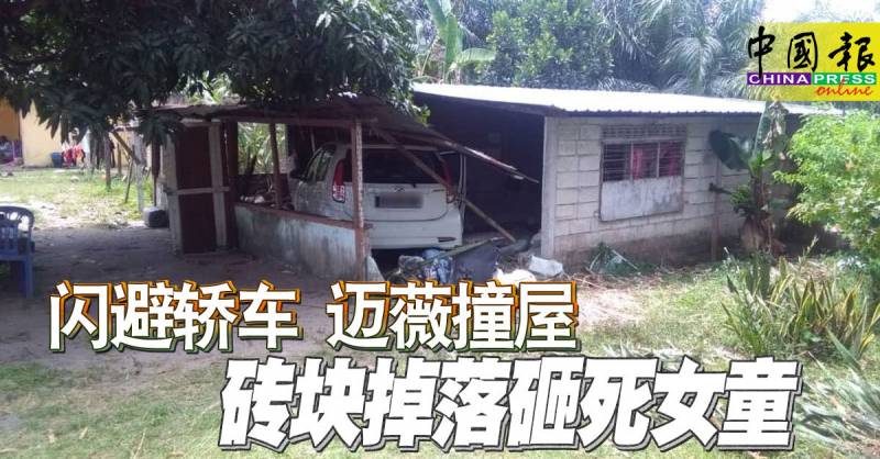 3名母女昨早10时许在家休息,却因失控的迈薇轿车撞上屋子,导致3人被坍塌的砖块砸伤,其中一名6岁女童送院后宣告不治。