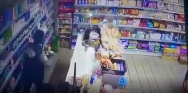 一名男子步入迷你超市后直接亮刀示意打抢。