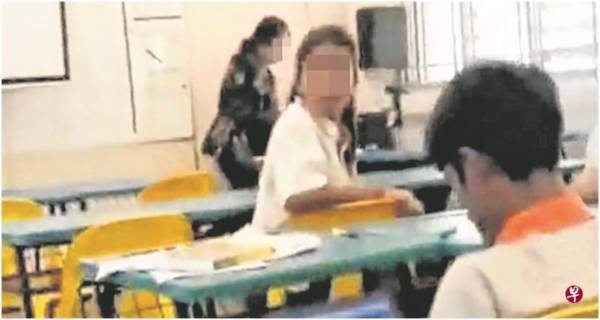 闹剧发生时,课室内有一名女教师(黑衣者)。(视频截图)