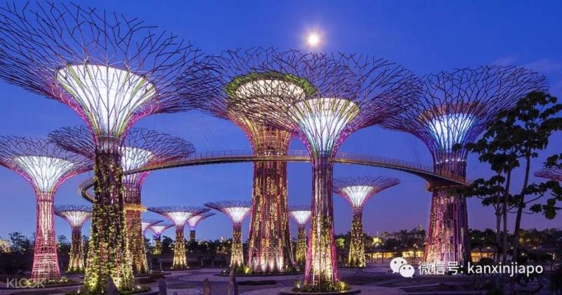 晚上的滨海湾花园,不仅可以登上天空树,欣赏一场灯光音乐会,还可以在公园里一边遛弯,一边赏月,一举多得!