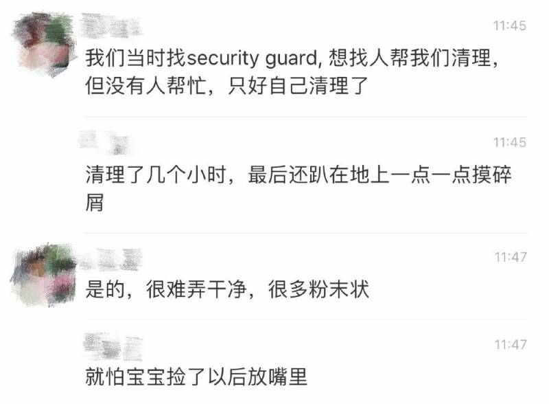 随后,网友想找小区的保安帮忙清理,但是没有人来,就只得自己在地上趴了几个小时清理干净。