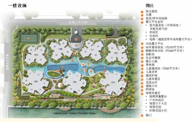 蜿蜒的休闲池以及其他水景都会定期的清洁与维护,为每一位住户提供舒适安全的娱乐环境。儿童嬉戏池,儿童凉亭,为每一位小朋友提供嬉笑玩耍的场所。