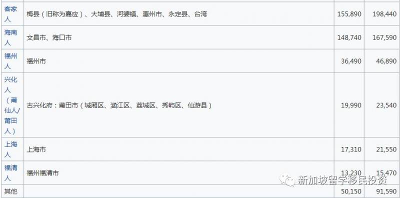 唯值得注意的是新加坡人所说的“福建人”,其实指的是来自[[泉漳]](包括[[厦门]])的“闽南人”,而不包括在福建省境内其的他籍贯;也就是说“福建人”并没有包括在“闽南地区”以外的福建人士。一般来说,在新加坡不被称为“福建人”的福建民系包括[[闽东民系]](福州人、福清人和宁德人)、[[兴化民系]](莆田人和仙游人)以及闽西的[[客家人]]。当时不采用“闽南人”而使用“福建人”来特指厦门、漳州以及泉州移民的原因有两个:
