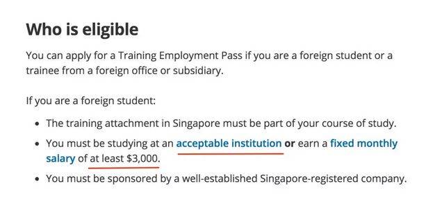 或者是新加坡指定院校的外籍学生,TWP可使其能在新加坡完成课程框架内的实习培训。