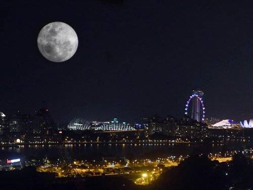 广告新加坡科学馆回复《联合晚报》询问时指出,若和今年最小的满月相比,今晚出现的超级月亮将大上14%。