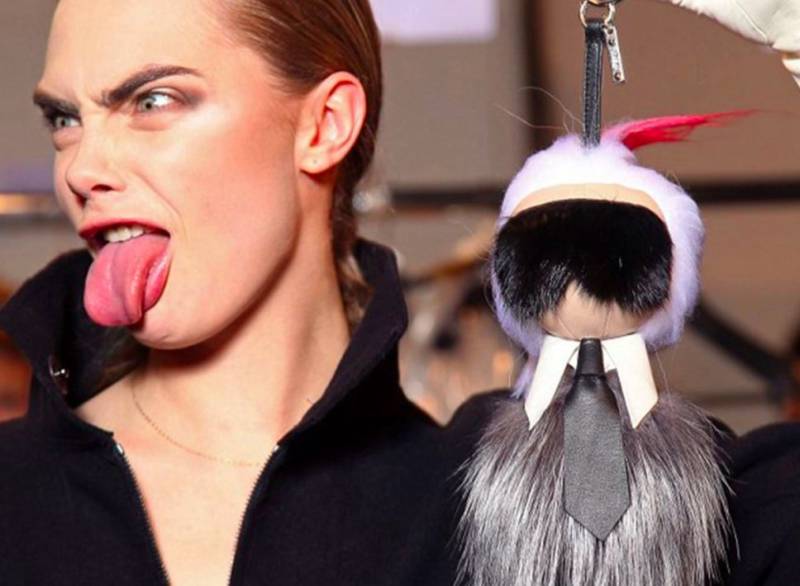 老佛爷非常中意的名模Cara Delevingne拿着以他为原型的 FENDI 挂饰