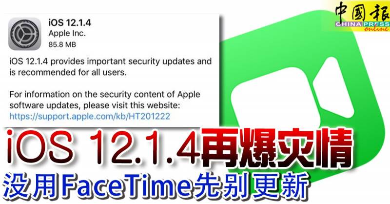 iOS 12.1.4再爆灾情 没用FaceTime先别更新
