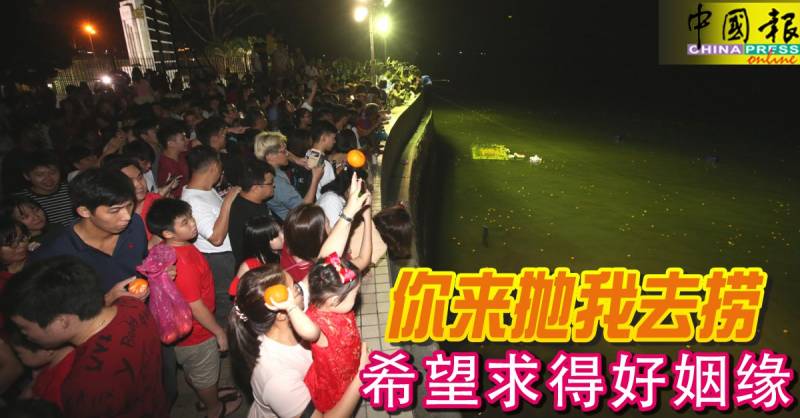 周二(19日)是农历正月十五元宵节,也是“中国情人节”,国内各地区皆有举行抛柑活动,吸引许多单身男女的参与,希望能成功“脱单”。