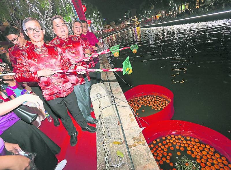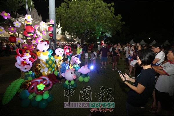 由马六甲鸡场街宗乡团联谊工委会、甲市区国会社区中心及哥打拉沙马那发展与协调委员会联合主办的“春到河畔庆元宵”,昨晚在甘榜于汝906河畔酒店后方的河畔两岸盛大举行。