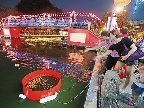 大会也设有抛柑、放水灯祈福,以及许愿树环节,许多年轻男女购买水灯及许愿彩带,写下愿望后到河畔放水灯,以及在许愿树挂上彩带。