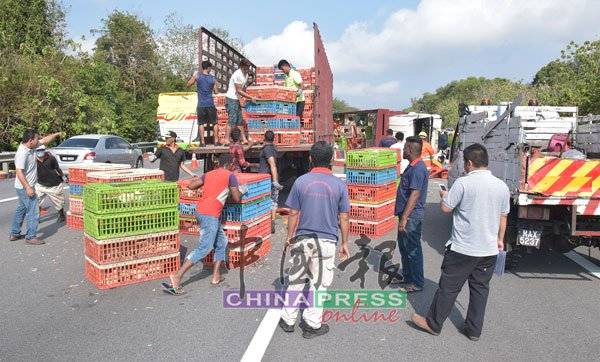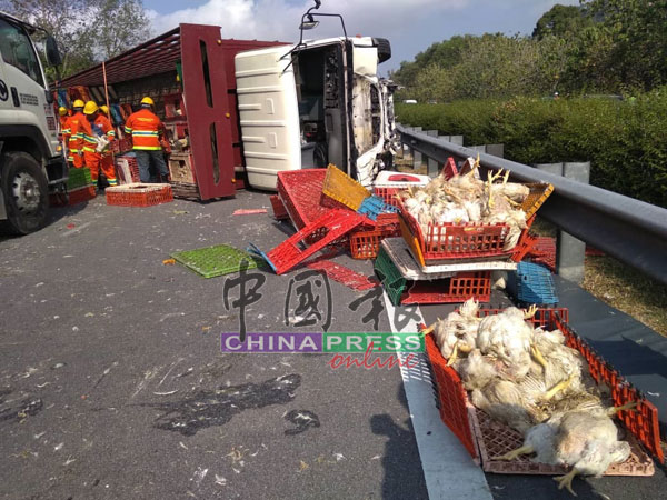 载着约3000只生鸡的罗厘,今早8时27分途经南北大道204.1公里时,不慎与大道公司巡逻四轮驱动车相撞,造成罗厘失控冲至反方向,并“横躺”大道上。