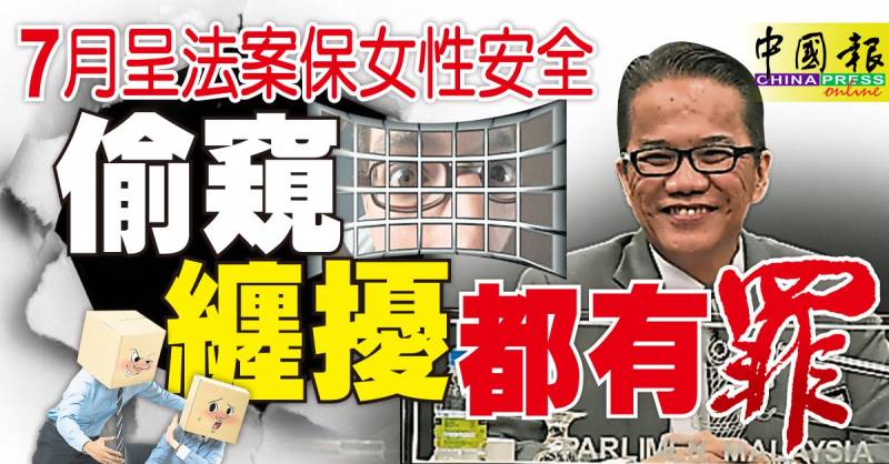 (吉隆坡19日讯)政府今年7月将提呈一项新法案给国会通过,凡是涉及偷窥(mengintai)和缠扰(menhendap)的举动,在此法案下都被列为罪行,必须受到法律制裁。