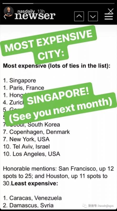 昨天新加坡被世界上最昂贵的城市,Nas在ins嘲(炫)讽(富)了一波,说:下个月见!