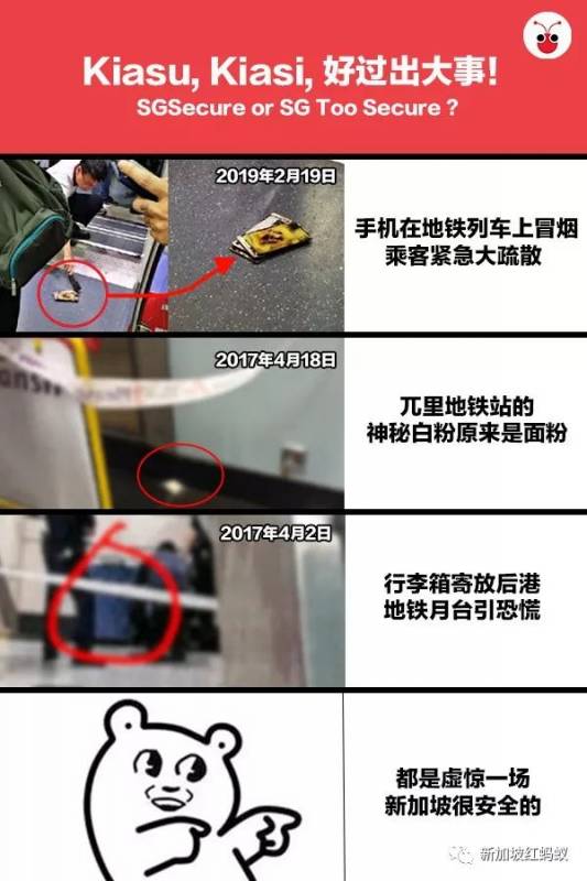 广告也因此,新加坡政府3年前推出全民反恐运动——“全国保家安民计划”(SG Secure),教导所有人民如何应对恐怖袭击,时刻保持警惕。这个,新加坡人可学得比中文都要快和好,在公共场所看到一个被遗留的包裹,还是无人认领的袋子,稍有不对劲就马上报警,正所谓“宁可杀错,不可放过”。虽然,大多数都是虚惊一场,但总比真的出大事好。