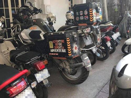 女骑士将重型摩哆停放在中央市场附近一家精品酒店外。(互联网)