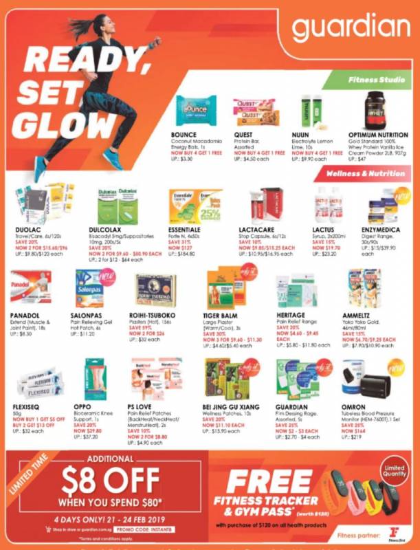 5.Guardainm满80新币立减S$8! 购买保健品满120新币还送运动手环