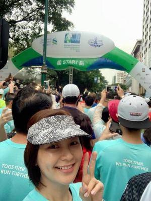她接受《联合晚报》访问时说:“这一次的马拉松是老公报名的,所以算是第一次全家马拉松吧,相信以后是每年全家的亲子活动之一。”