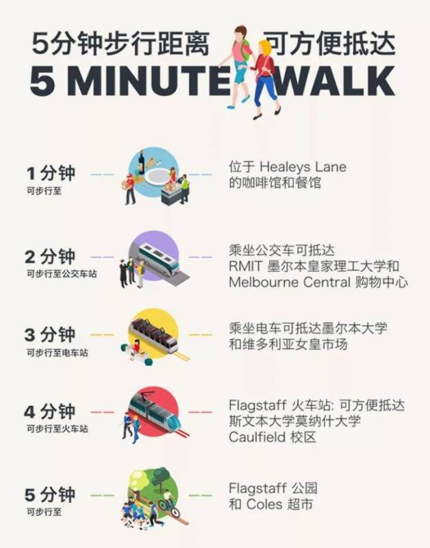 公寓位于墨尔本CBD市中心核心地段,可方便到达公共运输、餐馆、咖啡厅、购物中心、墨尔本大学及皇家墨尔本理工大学,轻松便捷的都市生活近在咫尺!