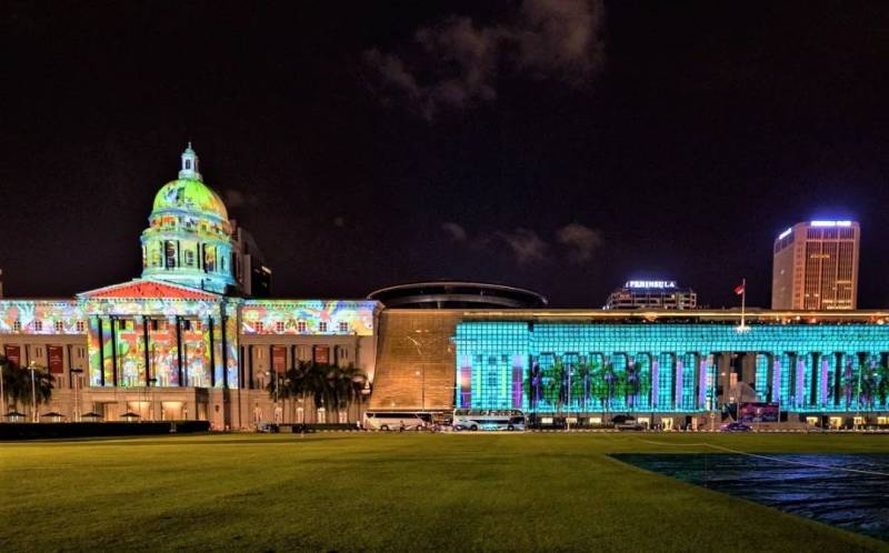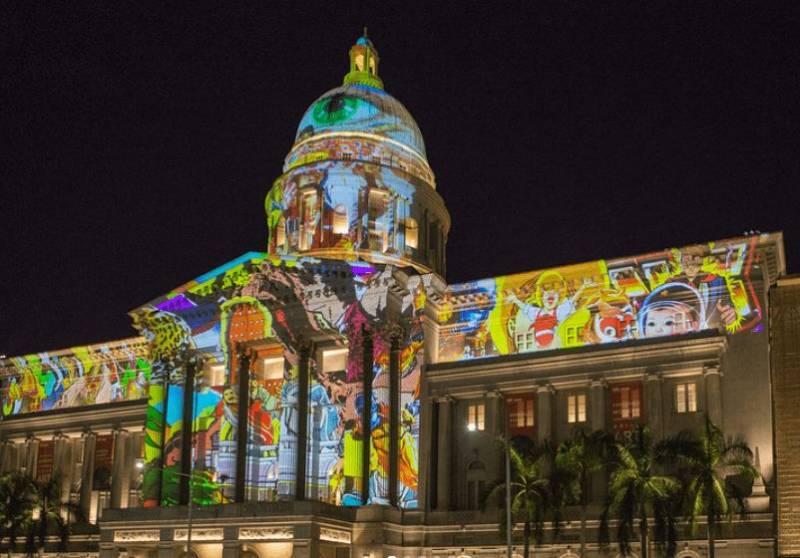 新加坡国家美术馆是灯光艺术节的主场,由前高等法院大楼和市政厅改建而成。这两座建筑皆为英国殖民时期极富古典主义的建筑,改建后的美术馆在保有古迹历史完整性的基础上,进行空间改造与机能置入。