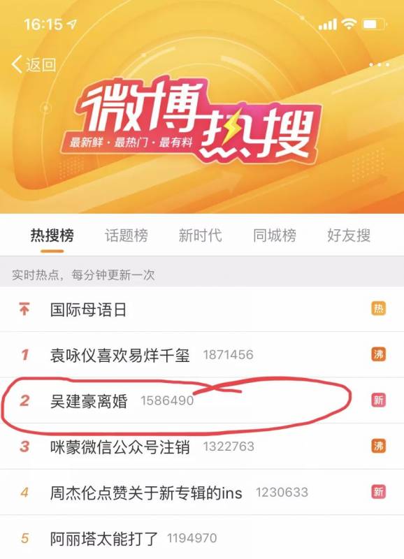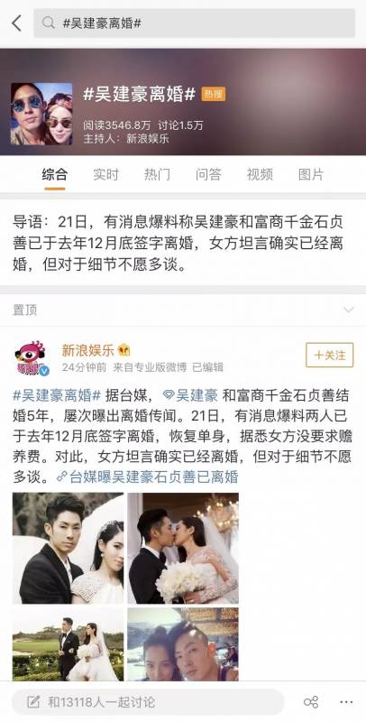 “吴建豪离婚”的消息都冲到微博热搜榜第二了
