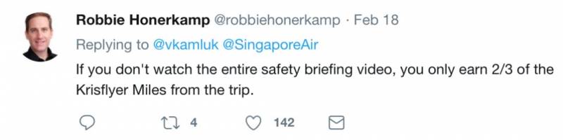 一旦机组人员发现你没看完,你就只能得到三分之二的Krisflyer里数(新航推出的一项活动,乘坐新航飞机可获得一定里数,用来之后兑换机票或升舱)。