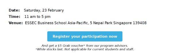 注册open day的学术将获得5新币的GRAB Voucher, 先到先得,机不可失。