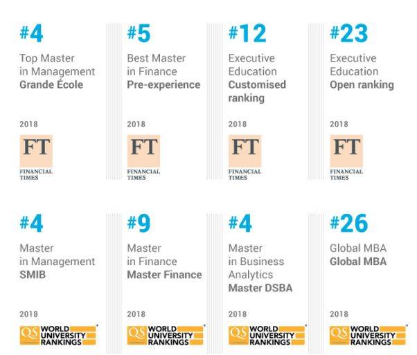 2018 FT 金融时代,欧洲商学院第8,管理学硕士课程世界第4,金融学硕士世界第5。