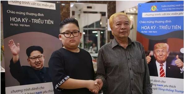 长相酷似金正恩的九岁男童To Gia Huy配合特金会,到发廊理了一个金正恩头。