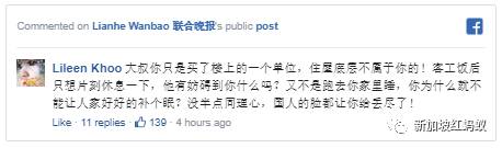 不知道是钱洁洋号召力强,还是大叔的行为真的很可耻。视频上载不到一天,就有近1万人转发、1500多人点愤怒,2500个留言,网民一面倒抨击阿叔,直指阿叔是“神经病”、丢尽国人的脸面,甚至气得在留言中爆粗“问候”他。以下这则是没那么粗暴的。