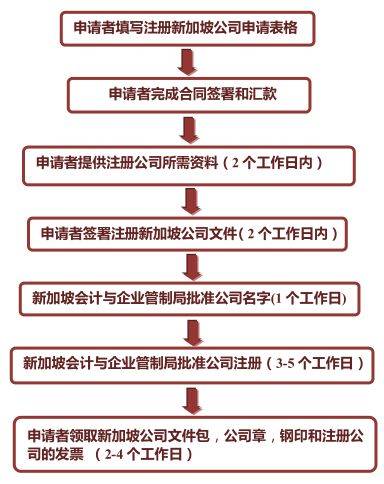 备注:以上时间为注册新加坡公司全部流程所需的标准时间,但以客户提供完整注册资料和新加坡企业与会计管制局内部审批时间为准。