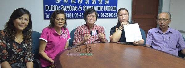 陈丕新(右起)陪同邱香琴、周凤兰、潘美兰及林秀芬召开记者会。