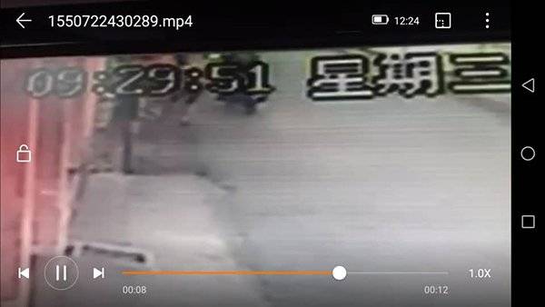在12秒的视频中,女子从后巷走入汽车维修店时,被掠夺匪推倒,马上抢走手提包,逃之夭夭。