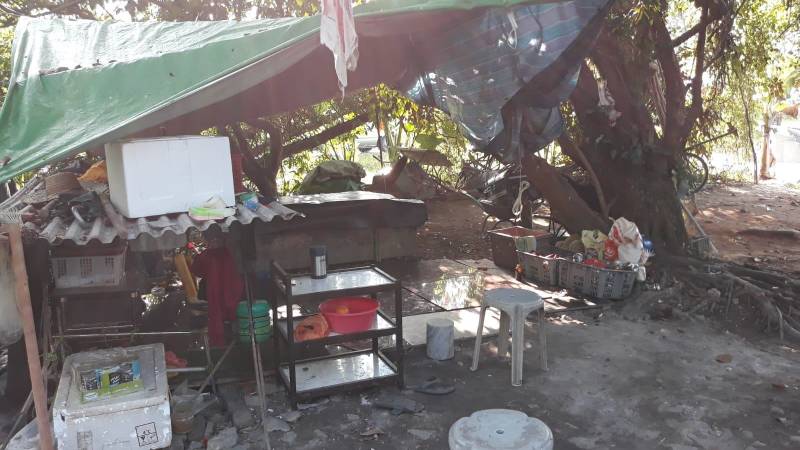 六名缅甸男子在蔡厝港坟场临时搭建的住处。