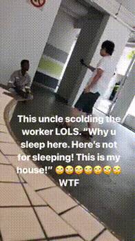 近日,一名劳工午休时间在组屋楼下睡午觉,却被一名安哥怒骂!