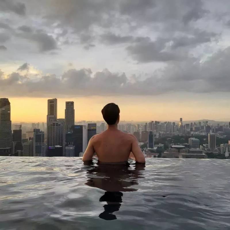位于金沙"船顶"的无边泳池是全世界最大的无边泳池,畅游的同时还能欣赏新加坡迷人的都市景观,还能看浪漫日落。