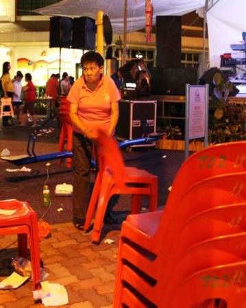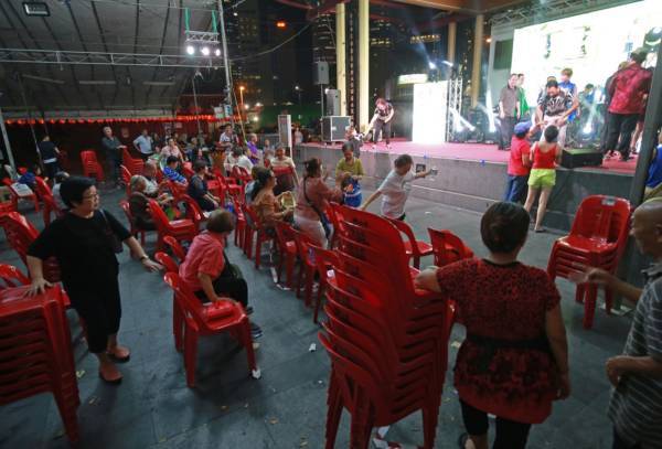 牛车水广场举办一场歌唱表演,岂料上午霸位嫂就与另一名阿嫂为了霸位而大打出手。