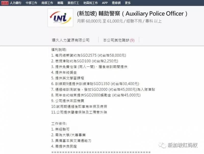 对了,红蚂蚁帮忙打个广告,翔鹰保安管理公司(AETOS)有在招聘辅警,各位有志蚁粉欢迎参考看看,再告诉红蚂蚁这样的待遇,搭配辅警的工作内容与工作时间算不算合理呢?
