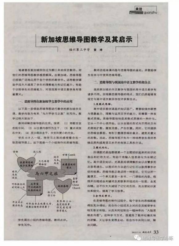 虽然新加坡的华文教学与我国的高中语文教学有诸多不同,但观察思维导图的特点,我们仍然能够发现它与高中语文教学存在许多契合点。