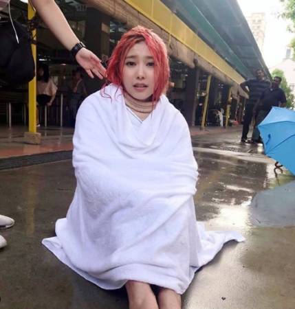《霸》前天榜晚在裕廊一家咖啡店前拍摄一场黄晶玲滑倒的戏码,彩排了六次都没问题,真正拍摄时却真的滑倒。她在Instagram晒出披着白毛巾一脸疲惫地坐在地上的照片,文中还隐约透露出也有其他人受伤。